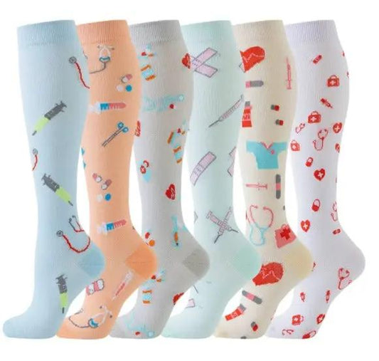 Kompressionsstrumpor – 6-pack med vårdmotiv för sjuksköterskor & vårdpersonal